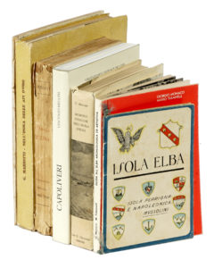 Compongono il lotto: 1) Mantegazza Vico, L'Italia poco conosciuta. L'Isola d'Elba. Con 11 illustrazioni e una carta. Milano: Treves, 1920; 2) Mellini Ponce De Leon Vincenzo, Delle memorie storiche dell'Isola d'Elba. Capoliveri. A cura di Gianfranco Vanagolli. Roma: Le Opere e i Giorni, 1996; 3) Id., Memorie storiche dell'Isola d'Elba. Parte archeologica ed artistica... Firenze, Olschki, 1965; 4) Mariotti Giovanni, Nell'isola delle api d'oro. Firenze, Rinascimento del Libro, 1934; 5) Mancini Renzo, L'Arcipelago Toscano. Seconda crociera di pesca marittima. Genova, Tipo-Litogr. del Commercio, 1922. Elenco completo disponibile su richiesta. (13)