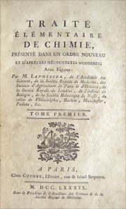 Lavoisier (Antoine L.). Traité Élémentaire de Chimie, Présenté dans un ordre nouveau, et d'après les découvertes modernes; Avec Figures. T. 2 : Seconde édition. Paris, Cuchet, 1789-1793. 2 volumes in-8, reliure de l'époque demi-basane brun...