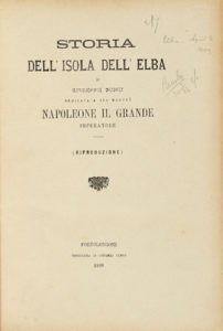 Ninci Giuseppe, Storia dell'isola dell'Elba [...] dedicata a sua Maestà Napoleone il Grande... Portolongone: tipografia di Vittorio Perna, 1898.