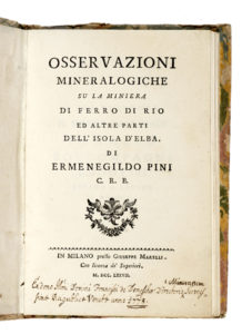 Pini Ermenegildo, Osservazioni mineralogiche su la miniera di ferro di Rio ed altre parti dell'isola d'Elba. In Milano: presso Giuseppe Marelli, 1777.