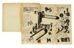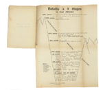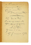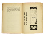 In-8° (mm 191x127). Pagine [6], 9-95, [1], 99, [1], 103, [1], 107, [1]. Con 4 tavole parolibere fuori testo, più volte ripiegate. Numerose poesie parolibere nel testo. Un rinforzo al margine interno di pagina 99, della tavola Bataille à 9 Étages (la quale presenta anche un piccolo foro restaurato) e della tavola Après la Marne (parzialmente incollata); segni di incollaggio anche tra la tavola Le soir e pagina 107, e uno strappo maldestramente restaurato con nastro adesivo alla tavola Une assemblée tumultueuse. Brossura editoriale con una composizione parolibera in nero e rosso al piatto anteriore. Lievi bruniture uniformi e fioriture ai piatti, dorso ricostruito, ma nel complesso buone condizioni di conservazione. Con una dedica autografa di Marinetti al foglio di guardia anteriore, datata 1931. (1)