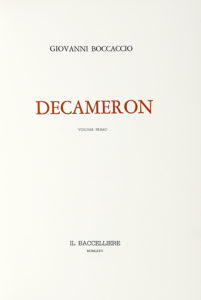 Boccaccio Giovanni, Decameron. Volume primo (-secondo). [Roma]: Il Baccelliere, 1975.