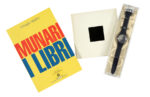 Diametro cassa 33 mm ca. Cinturino in plastica, con dodici piccoli dischi con i numeri delle ore posti sul quadrante, che possono muoversi liberamente tra le due casse ad ogni movimento del polso. Ottimamente conservato entro custodia in plexiglass, mai aperta, al cui interno si trova anche il certificato di garanzia. SI AGGIUNGONO: Id., Discovery of the Square. New York: George Wittenborn, 1962; Maffei Giorgio, Munari. I libri. Milano: Edizioni Sylvestre Bonnard, 2007. (3)