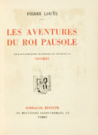 In-4° (mm 345x160). Pagine 184, [3], 1 bianca con numerose illustrazioni a colori nel testo. Rare fioriture marginali, per il resto buona copia. Es. n. 993 su una tiratura complessiva di 1000 esemplari, uno dei 940 su papier de rives. Legatura coeva in mezzo marocchino con piatti in carta decorata e titoli impressi in oro al dorso. Conservato all'interno di custodia in carta decorata, brossure originali all'interno. Leggera scoloritura del dorso. SI AGGIUNGE: Louys Pierre, Les Aventures du roi Pausole. Paris: Rombaldi editeur, 1937. (2)