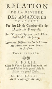 Acuña Cristobal (de), Relation de la riviere des Amazones traduite [...] Sur l'original espagnol [...] Tome premier (-II). A Paris: chez la veuve Loüis Billaine, 1682.