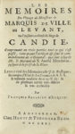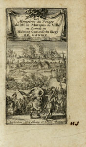 Alquié François Savinien (d'), Les memoires du voyage de monsieur le Marquis de Ville au Levant, ou l'Histoire curieuse du siege de Candie... A Amsterdam: chez Henry & Theodore Boom, 1670-1671.