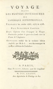 Carver Jonathan, Voyage dans les parties intérieures de l'Amérique septentrionale, pendant les années 1766, 1767 & 1768. A Paris: chez Pissot, libraire, quai des Augustins, 1784.