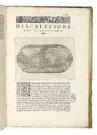In-folio (mm 295x207). Pagine [24], 201, [3]. Bella bordura architettonica in rame al frontespizio e 47 stupende mappe a mezza pagina nel testo, il tutto inciso in rame dal Porro; testatine e iniziali xilografiche e grande marca tipografica, sempre in legno, in fine. Sporadiche fioriture e macchioline, una piccola integrazione al foglio di guardia anteriore e altri minimi difetti. La carta del Mondo Nuovo, a pagina 161, risulta applicata, ma parzialmente staccata, sopra quella della Grecia, che presenta tracce di incollaggio. Nel complesso ottima copia su carta forte. Legatura coeva in piena pergamena, con cornice di filetto dorato ai pietti e fregio in oro agli angoli; titoli manoscritti su tassello al dorso. Minimi difetti. Entro cofanetto moderno in mezza pelle con pitti in carta marmorizzata e titoli in oro al dorso. (1)