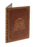 Legatura in folio (mm 310x215) in vitello avana con armi impresse in oro ai piatti entro bordura con rotella a palmette. Carta decorata all'interno. Minimi fori di tarlo ai piatti. (1)