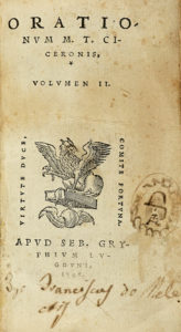 Cicero Marcus Tullius, Orationum [...] volumen II. Lugduni: apud Sebast. Gryphium, 1546.