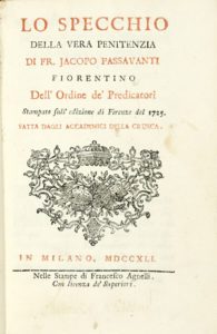 Passavanti Jacopo, Lo specchio della vera penitenzia. Milano: nelle stampe di Francesco Agnelli, 1741.