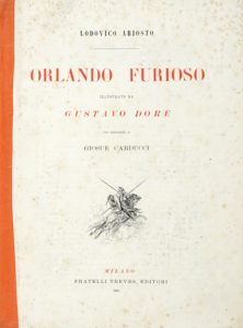 In-4° (mm 330x240). Con il ritratto di Dante in antiporta e numerose illustrazioni a piena pagina in bianco e nero nel testo. Carte uniformemente brunite in corrispondenza dei margini, sporadiche fioriture. Strappetto maldestramente restaurato con nastro adesivo a pagina 11 che coinvolge parte dell'illustrazione e altri piccoli marginali difetti. Legatura coeva in pelle rossa con titoli in oro e medaglione con ritratto dell'Autore lavorato a sbalzo al piatto anteriore, il tutto entro cornice floreale impressa a secco. Spellature e segni di usura a piatti, cuffie e unghiature. SI AGGIUNGE: Id., La Vita Nuova [...] per cura di Michele Serrillo... Milano: Ulrico Hoepli, 1911. In-8° (mm 252x197). Con illustrazioni a piena pagina in bianco e nero fuori testo. Legatura in mezza pergamena con punte e piatti in cartonato. Titoli in oro impressi al piatto anteriore e al dorso su tassello in tela. SI AGGIUNGE: Ariosto Ludovico, Orlando Furioso illustrato da Gustavo Doré... Milano: Fratelli Treves, 1881. In-folio (mm 410x306). Con numerose illustrazioni in bianco e nero nel testo e fuori testo. Esemplare fiorito. Legatura editoriale in piena tela con titoli impressi in oro entro cornice decorativa al piatto anteriore e al dorso. Sguardie in carta decorata. Mancanze e difetti ai piatti, unghiature e punte. (3)