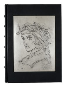 In-folio (mm 452x315). Ottimo esemplare, con 10 belle acqueforti di Alberto Sughi a colori, fuori testo e protette da velina. due delle quali a doppia pagina. Legatura originale in piena pelle, con titoli in oro al dorso a sei nervi e con una scultura originale a bassorilievo, dal titolo Ritratto di Dante Alighieri, realizzata da Sughi, realizzata in fusione, ricoperta in argento 925 millesimi e patinata con speciale procedimento manuale presso la Fonderia Artistica "Farbel" di Brescia, firmata e numerata dall'Artista. Entro cofanetto originale in piena tela blu, con titoli in oro al piatto e al dorso. Minimi difetti. Uno dei 975 esemplari in numeri arabi, su una tiratura complessiva di 1050, firmate a matita da Sughi al colophon. (1)
