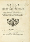 Alembert Jean Le Rond (d'), Essai d'une nouvelle theorie de la résistance des fluides. A Paris: chez David l'aîné, libraire, rue s. Jacques, à la Plume d'or, 1752.