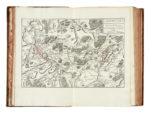 In-folio (mm 405x225). Con, fuori testo, un bel frontespizio inciso, disegnato da Claude Louis Desrais, e 42 tavole calcografiche di carte geografiche, piani di battaglia, fortificazioni e ritratti, di cui 40 s doppia pagina o ripiegate; schemi delle disposizioni delle truppe colorate a mano. Testatine, capilettera e finalini calcografici. Lievi e uniformi bruniture e alcune rare macchioline alle tavole, altrimenti buona copia. Legatura coeva in piena pelle, fregi e titoli in oro al dorso a 6 nervi, sguardie marmorizzate e tagli rossi. dorati e tassello di titilo. Difetti alle cuffie e fenditura in alto e basso della cerniera anteriore. Abrasioni ai piatti e difetti alle cerniere, con tracce di nastro adesivo nella parte inferiore del dorso.