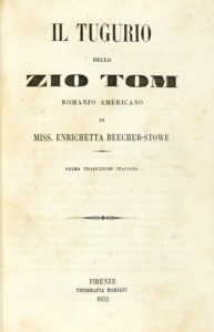 Beecher Stowe Harriet, Il tugurio dello zio Tom romanzo americano. Firenze: Tipografia Mariani, 1852.