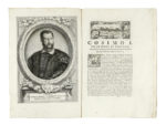 In folio (mm 455x310). Pagine [4], XXIV, 192, [13], 1 bianca con 1 tavola in antiporta in calcografia + 8 [di 10] ritratti calcografici incisi in rame fuori testo. Frontespizio impresso a due colori con fregio calcografico, testatine, capilettera e finalini alle pagine. Copia con occasionali fioriture marginali (concentrate nei primi fascicoli) e alcuni strappetti che non ledono il testo. Per il resto marginosa e ben conservata. Legatura coeva in mezza pergamena rigida con angoli e piatti in carta marmorizzata. Titolo manoscritto al dorso. Ex-libris di precedente proprietario al contropiatto anteriore, ex-libris manoscritto di Alfredo Medici Tornaquinci datato 1881 alla carta di guardia iniziale. (1)