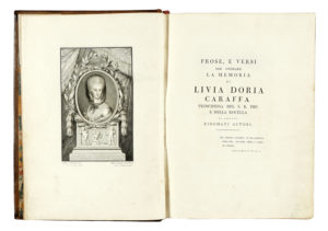 Bodoni Giambattista, Prose e versi per onorare la Memoria di Livia Doria Caraffa Principessa... (Al colophon:) Parma: impresso nella Reale Stamperia di Parma, 1784.