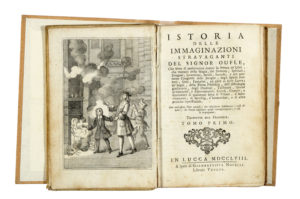 Bordelon Laurent, Istoria delle immaginazioni stravaganti [...] Tomo primo (-secondo). In Lucca: a spese di Giambattista Novelli librajo veneto, 1757-58.