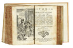 2 tomi in 1 volume in-8° (mm 175x115). Pagine [8], 320; 361, [3]. Con due antiporta figurate incise in rame nel testo. Ciascuna parte con proprio frontespizio. Esemplare fortemente fiorito, con macchie e qualche gora marginale. Strappo restaurabile alle carte Q11 e Q12. Legatura coeva in piena pergamena, con titoli al dorso, ormai parzialmente cancellati; tagli spruzzati di rosso. Quasi completamente staccato il piatto anteriore e mancanze alle punte. Entro camicia in cartonato moderno con laccetto di chiusura. (1)