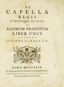 Carafa Giuseppe Maria, De capella regis utriusque Siciliae et aliorum principum liber unus. Romae: ex typographia Antonii de Rubeis in via Seminarii Romani, 1749.
