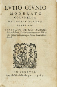 Columella Lucius Iunius Moderatus, De l'agricoltura libri XII Trattato de gli alberi del medesimo... In Venetia: appresso Nicolò Bevilacqua, 1564.