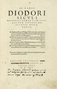 Diodorus Siculus, En damus Diodori Siculi historici Greci, quae nunc quidem extare noscuntur opera, nempe... Basileae: excudebat Henricus Petrus, 1531.