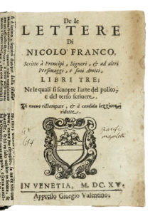 Franco Niccolò, De le lettere [...] scritte à prencipi, signori, & ad altri personaggi, e suoi amici, libri tre. In Venetia: appresso Giorgio Valentino, 1615.