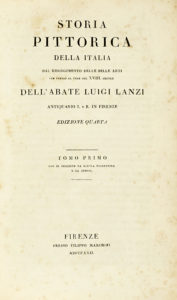 Lanzi Luigi, Storia pittorica della Italia dal risorgimento delle belle arti fin presso al fine del XVIII secolo... Tomo primo (-sesto). Firenze: presso Filippo Marchini, 1822.