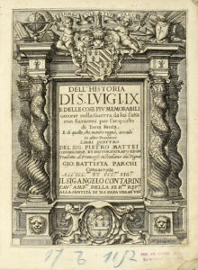 Matthieu Pierre, Dell'historia di S. Luigi IX e delle cose piu memorabili occorse nella guerra da lui fatta con Saraceni per l'acquisto di Terra Santa. (Al colophon:) In Venetia: [Andrea Muschio], nella stamparia di Francesco Baba, 1628.