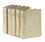 5 volumi in-4° (mm 280x200). Pagine XLVIII, 430, [1], 1 bianca con 2 tavole incise fuori testo, una in luogo di antiporta; [4], 447, [1]; [4], 495, 1 bianca; [4], 471, 1 bianca; [4], 460. Con numerosissime incisioni in rame e legno nel testo. Copia leggermente e diffusamente brunita, con bruniture più intense in alcuni fascicoli, uno strappo che interessa il testo alla carta D2 del terzo volume, ma per il resto completa e in barbe. Cartonato rustico coevo con titoli manoscritti al dorso. Rinnovate le sguardie dei volumi. (5)