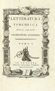 Toderini Giambattista, Letteratura turchesca. Tomo I (-III). In Venezia: presso Giacomo Storti, 1787.