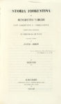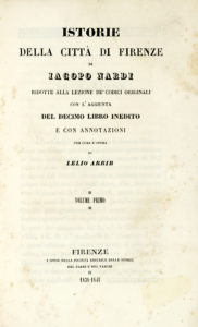 Varchi Benedetto, Storia fiorentina [...] per cura e opera di Lelio Arbib. Volume primo (-terzo). Firenze: a spese della Società Ed. delle Storie del Nardi e del Varchi, 1838-41.