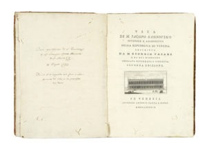 Vasari Giorgio, Vita di M. Jacopo Sansovino scultore e architetto della Repubblica di Venezia... In Venezia: Appresso A. Zatta e Figli, 1789.