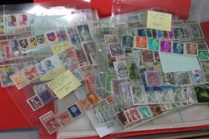 Lot de timbres en vrac dans un cartable