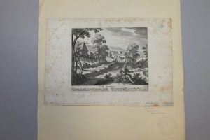 Prise de guerre de la Deuxième Divison Blindée à Berchtesgaden en 1945: Gravure ancienne: "VIR BONUS" 19x26,5 cm (collée sur feuille carton, pliure, déchirures, rousseurs) Provenance: comporte un cahet à l'encre bleue légèrement éffacé: "Cette pièce provient des collections personnnelles d'Hermann GOERING au Berghof, Berchtesgaden, pour authentification: Deuxième division blindée G.5"