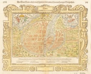 Plan de Paris. Gravure en couleur signée en bas à droite " MARFILIEN ". Travail allemand. H. : …