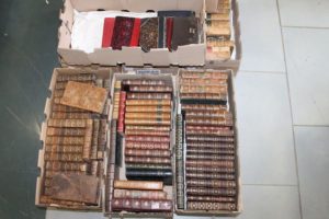 4 Cartons de livres anciens reliés XVIII et XIXème siècles (accidents)