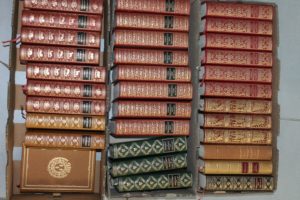 3 Cartons contenant 33 volumes de Jean BONNOT -Les oeuvres de Molière: 6 volumes -CERVANTES, Don QUICHOTTE: 4 volumes (x2) -DANTE, La divine Comédie: 3 volumes -François VILLON, oeuvres: 2 volumes -Lettres de Napoléon: 3 volumes -D'ARTAGNAN, mémoires: 3 volumes -LAFONTAINE: 7 volumes -LA BRUYERE, Les caractères: 1 volume