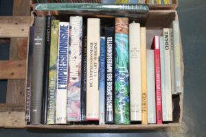Carton contenant 19 livres sur les peintres et divers dont Van GOGH, CHAGALL, RUPPERT, VERMEER, 5 volumes sur l'impressionnisme etc...
