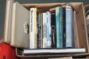 carton contenant 16 livres dont les avions, Air FRANCE, 2 volumes histoire de la marine, 50 ans …