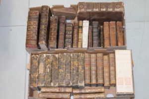 2 cartons de livres anciens dont 8 volumes Histoire des Maisons d'AUTRICHE, 5 volumes Comte de VALMOND, 4 volumes l'Intrigue du cabinet, 2 volumes Lettres Persannes,1 volume Histoire Romaine 1678 et divers