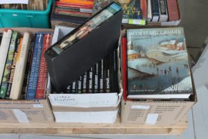 3 cartons de livres sur les peintres dont POUSSIN, MONET, MANET, BOTTICELLI, MICHEL-ANGE, …