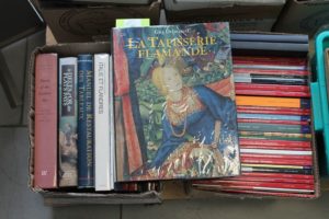 2 cartons contenant 14 livres histoire de l'art et divers dont grand livre sur la tapisserie …
