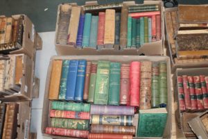 5 cartons de livres anglais divers dont un carton de reliés anciens