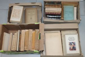 -Gustave FLAUBERT, La Tentation de Saint Antoine -BAUDELAIRE, oeuvres complètes, 3 volumes: Les Paradis artificiels, Curiosités esthétiques et Petits poèmes en prose -Anatole FRANCE, Les 7 femmes de barbe-bleue -Victor HUGO, Les châtiments de l'Ex Libris de L.MOYNIER 1873 ------ -Guy PREVAN, Entre chien et loup avec litho de DADZU, signée au crayon et numéroté -R.M.Rilke, Le Paysage -R.M.Rilke, Le Livre du pèlerinage -R.M.Rilke, Chant de l'amour et de la mort -Gérard d'HOUVILLE, Les Poésies -Louis PERGAUD, Poèmes (1 des 25 ex sur Arches) -L.NACHIN, Charles De GAULLE Général de FRANCE -ALAIN, Chez le sculpteur ------ 2 cartons de livres principalement littérature XIXème ----- -Pantagruel, 3 tomes -G. De Nerval, voyage en orient suivi d'Isis, 3 tomes -Voltaire, Micromégas -La Bruyère, Les Caractères