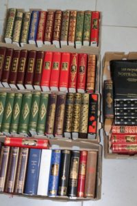 5 cartons contenant 59 volumes divers dont Jean de BONNOT; -Jules MICHELET, Histoire de la révolution Française, 7 volumes -Émile ZOLA: 2 volumes -LAFONTAINE: 2 volumes -Homère: 2 volumes -Hérodote: 2 volumes -NOSTRADAMUS: 2 volumes -TAILLEYRAND, Mémoires: 5 volumes -Victor HUGO: 3 volumes -etc... On y joint 11 Volumes Dictionnaire LE ROBERT