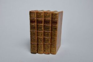 BUAT-NANCAY (Louis-Gabriel, Comte) 1732-1787, historien et écrivain politique : Les Origines ou l'Ancien gouvernement de la France, de l'Allemagne et de l'Italie - Ouvrage historique, Où l'on voit, dans leur origine, la Roïauté et ses attributs, la Nation et ses différentes Classes, les Fiefs & le Vasselage, les Dignités, la Hiérarchie, les Immunités Ecclésiastiques & les Domaines ; la Milice et la Chevalerie ; la Justice distributive ; la compétence des Tribunaux, leur forme ; les Parlemens, les autres Cours souveraines, les Etats Généraux, la Pairie, la Législation, & les Coutumes. La Haye, s. n., 1757 ; quatre volumes in 12, veau fauve jaspé, dos à nerfs ornés, tr. jaspées. reliure de l'époque. Edition originale peu courante. Exemplaire bien complet en quatre volumes.