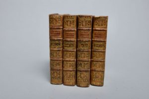 [ARNAUD (l'abbé) et SUARD (Jean-Baptiste)] : Variétés Littéraires, ou Recueil de Pièces tant originales que traduites, concernant la Philosophie, la Littérature & les Arts. Paris, Lacombe 1768-1769 ; quatre volumes in 12, veau fauve jaspé, dos à nerfs ornés, tranches rouges. Reliure de l'époque. Recueil de pièces originales ou traduites, par Madame de Staël, fille de Necker, Turgot, Diderot, Morellet, etc, quelques-unes déjà publiées dans le Journal Étranger et la Gazette Littéraire d'Europe, rassemblées par Suard et l'abbé Arnaud, deux auteurs très proches des encyclopédistes. Bel exemplaire, enrichi, dans le tome I, d'une longue note manuscrite de deux pages, rédigée vers 1804, par le possesseur du moment Tissot, avocat.