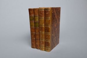 [LA METHERIE (Jean-Claude)] : Principes de la philosophie naturelle. Genève, 2ème édition, 1787 ; deux volumes in 8°, veau blond, dos à nerfs ornés, pièces de titre et de tomaison en maroquin vert, triple filet doré sur les platsn tranches dorées. Fine et élégante reliure de l'époque. Bel exemplaire de cette intéressante étude. L'auteur fut à la fois médecin, philosophe et géologue ; il fut le premier à étudier la géologie sur le terrain. Ex libris manuscrit répété : « ex museo Benj. Le Blanc ». On joint : SALVERTE (Eusèbe Joseph Baconnière de) Essai historique et philosophique sur les noms d'hommes, de peuples et de lieux, considérés principalement dans leurs rapports avec la civilisation. Paris, Bossange, 1824 ; 2 vol. in 8°, demi-veau orné de l'époque.